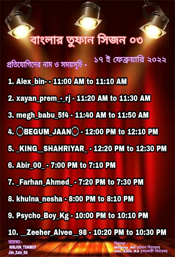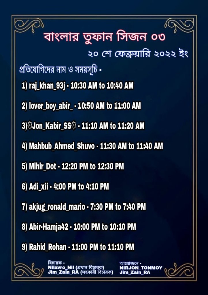 👉প্রতিযোগিতার জন্য আপনার নাম নিবন্ধন করা হয়ে গেলে আপনাকে আয়োজক মন্ডলী থেকে সুনিদৃষ্ট তারিখ এবং সময় বলে দেওয়া হবে।